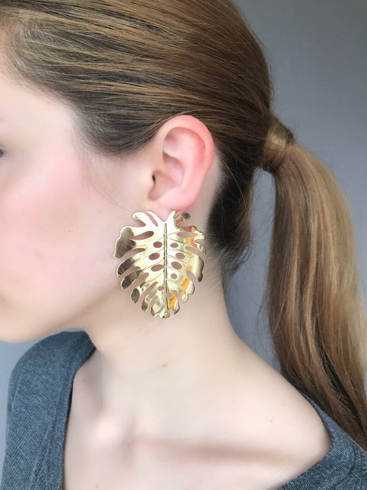 Gold monstera leaf earrings