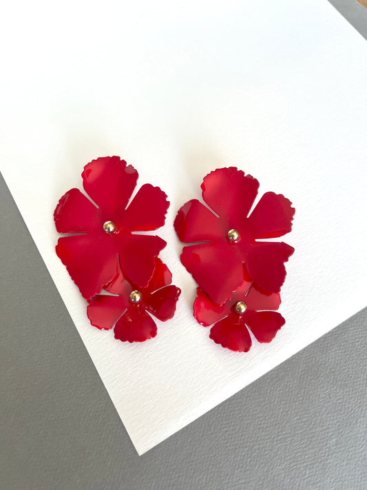 Large red flower earrings
