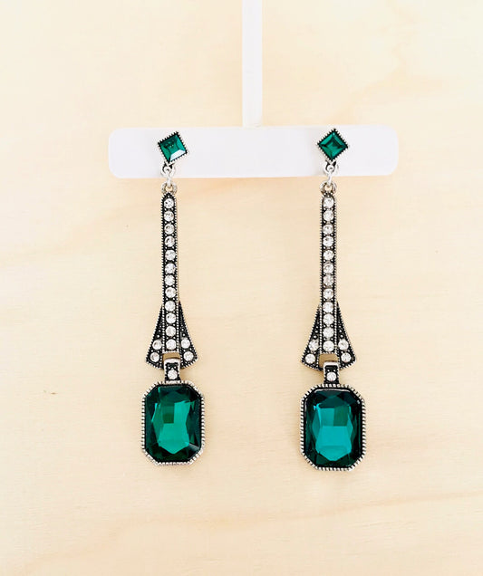 Art deco green crystal drop earrings