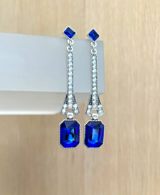 Royal blue art deco crystal earrings