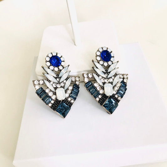 Blue art deco crystal earrings