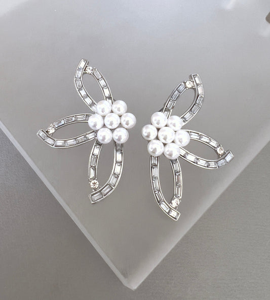 Pearl leaf earrings