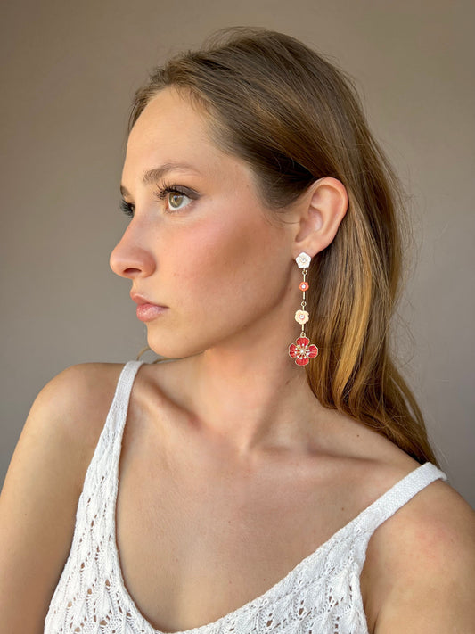 Red flower earrings