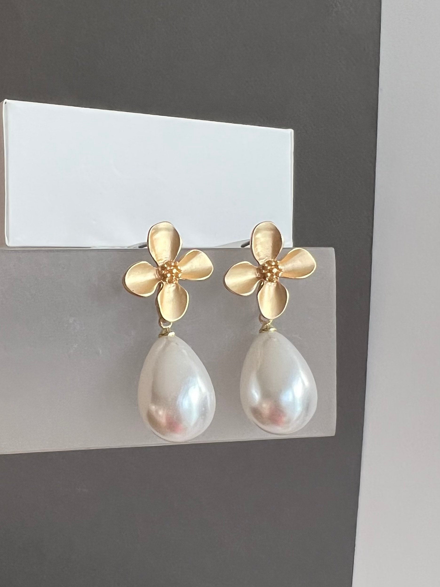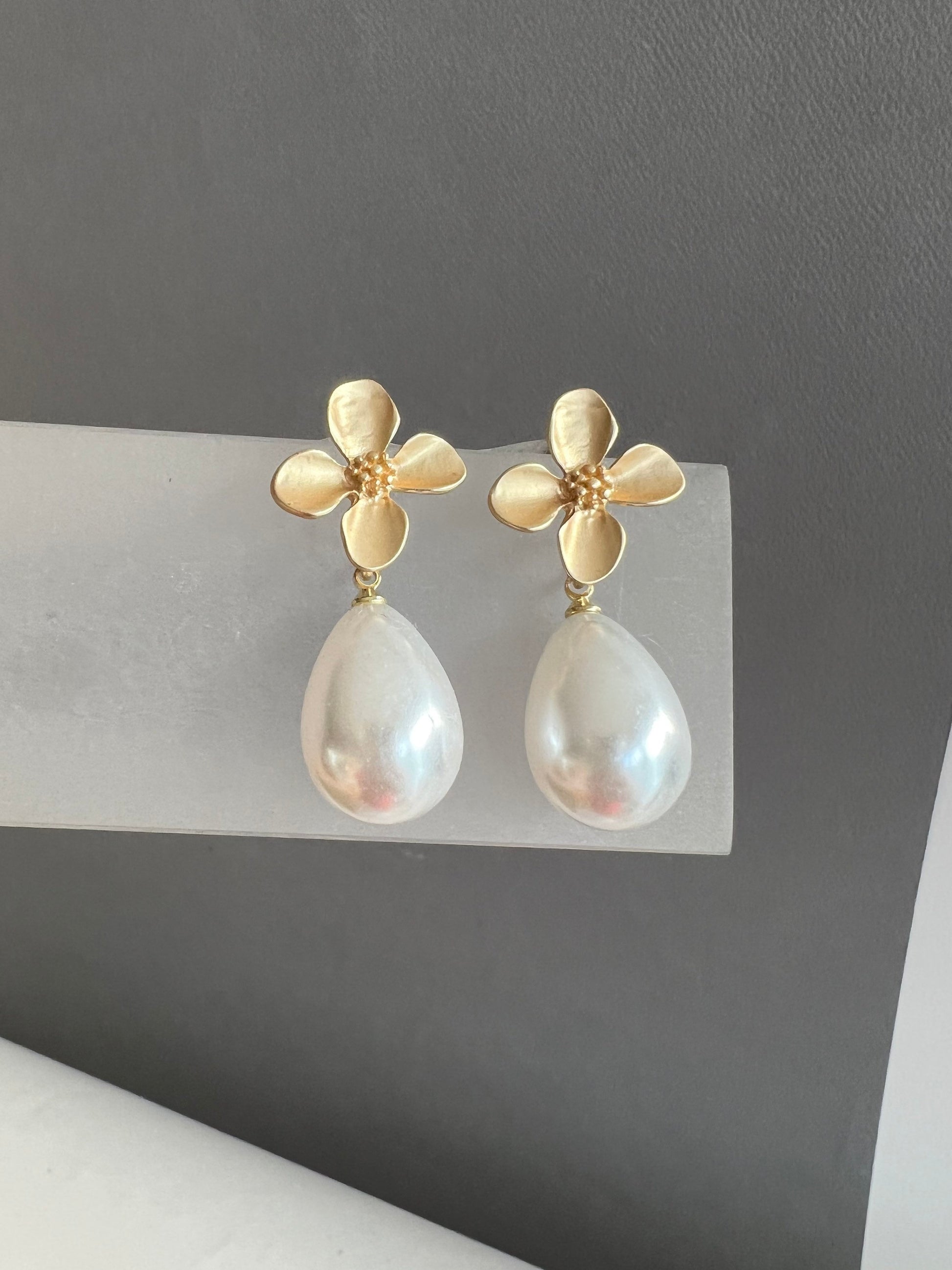 Large teardrop pearl earring