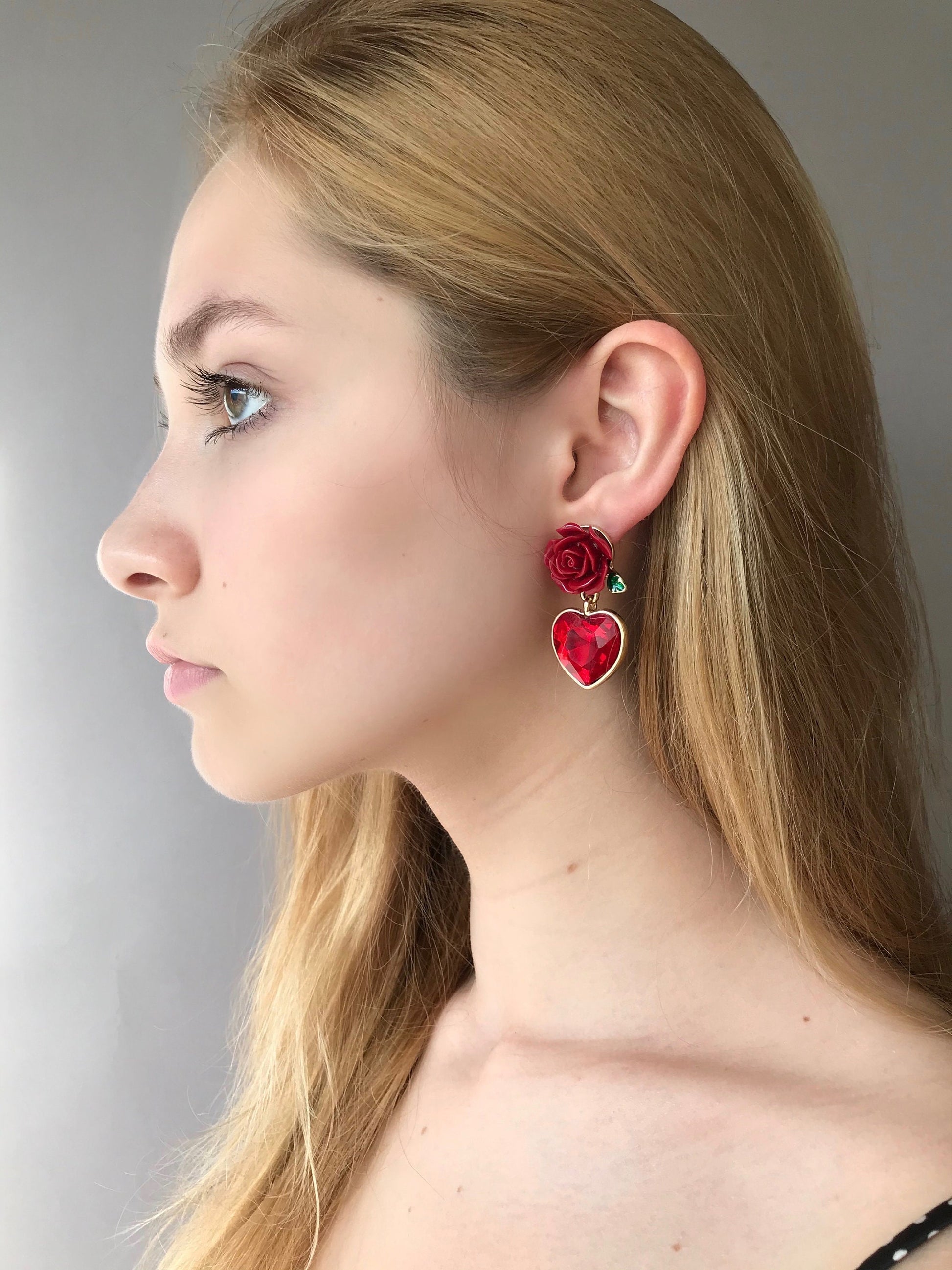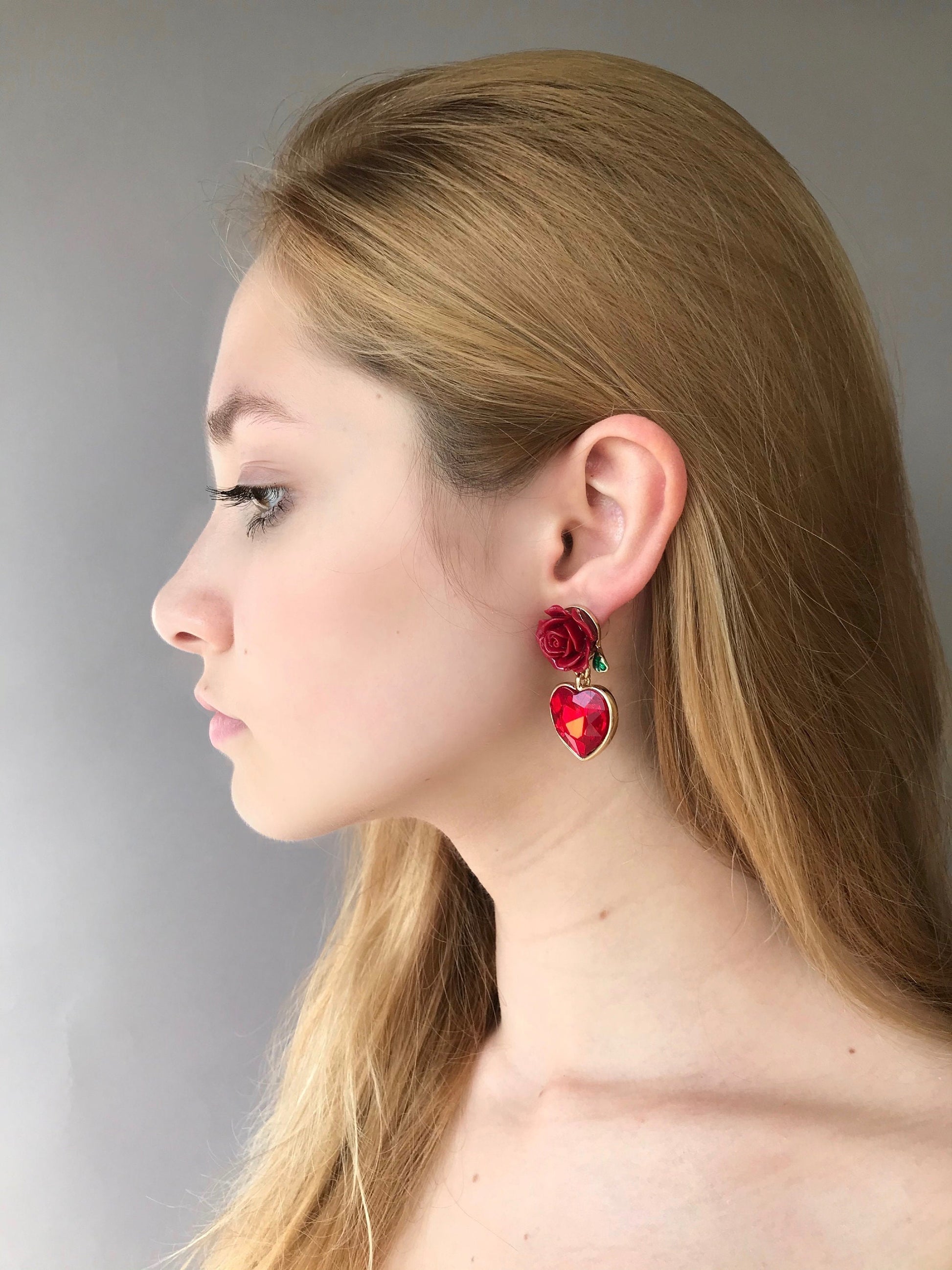 Red rose and heart earrings